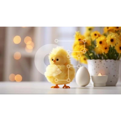 Υπάρχει δυνατότητα προσωποποίησης με δική σας φωτογραφία και προσαρμογής διαστάσεων κατόπιν παραγγελίας. Το συγεκεριμενο Puzzle 10x10 cm – 25 κομμ παρουσιαζει Αυτή η εικόνα παρουσιάζει ένα κίτρινο κοτόπουλο παιχνίδι τοποθετημένο μπροστά από διάφορα λουλούδια και κεριά. Τα λουλούδια περιλαμβάνουν ηλίανθους, μαργαρίτες και νάρκισσους, δημιουργώντας ένα ζωντανό και χαρούμενο σκηνικό κατάλληλο για δια