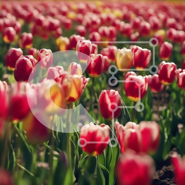 Υπάρχει δυνατότητα προσωποποίησης με δική σας φωτογραφία και προσαρμογής διαστάσεων κατόπιν παραγγελίας. Το συγεκεριμενο puzzle παρουσιαζει Η εικόνα απεικονίζει ένα χωράφι με ανθισμένες κόκκινες και κίτρινες τουλίπες, με σειρές από λουλούδια να εκτείνονται σε όλο το χωράφι. Είναι ένα ζωντανό και πολύχρωμο θέαμα, που πιθανώς υποδηλώνει μια συνεχιζόμενη περίοδο ανθοφορίας. Άλλοι τύποι λουλουδιών, όπως μαργαρίτες ή κ