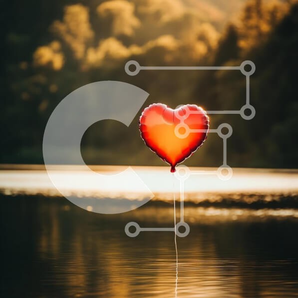 Υπάρχει δυνατότητα προσωποποίησης με δική σας φωτογραφία και προσαρμογής διαστάσεων κατόπιν παραγγελίας. Το συγεκεριμενο puzzle παρουσιαζει Η εικόνα παρουσιάζει ένα μπαλόνι σε σχήμα καρδιάς που επιπλέει πάνω από ένα γαλήνιο σώμα νερού. Το φόντο παρουσιάζει καταπράσινα δέντρα που φωτίζονται από τη ζεστή λάμψη του ήλιου που δύει, δημιουργώντας μια γαλήνια και ρομαντική ατμόσφαιρα. Η γυαλιστερή επιφάνεια του μπαλονιο