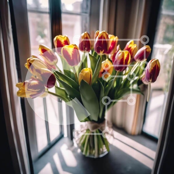 Υπάρχει δυνατότητα προσωποποίησης με δική σας φωτογραφία και προσαρμογής διαστάσεων κατόπιν παραγγελίας. Το συγεκεριμενο puzzle παρουσιαζει Αυτή η εικόνα παρουσιάζει ένα βάζο γεμάτο με κίτρινες, κόκκινες και πορτοκαλί τουλίπες που κάθονται μπροστά από ένα ανοιχτό παράθυρο. Τα λουλούδια εμφανίζονται φρέσκα και ζωντανά, υποδηλώνοντας πρόσφατη συλλογή και τοποθέτηση στο βάζο. Μπορεί να έχουν δοθεί ως δώρα ή για κάποι
