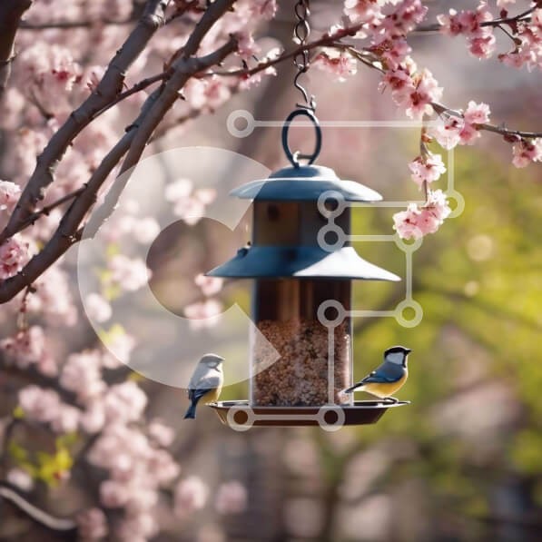 Υπάρχει δυνατότητα προσωποποίησης με δική σας φωτογραφία και προσαρμογής διαστάσεων κατόπιν παραγγελίας. Το συγεκεριμενο puzzle παρουσιαζει Η εικόνα δείχνει μια τροφοδοσία πουλιών με δύο μικρά πουλιά σκαρφαλωμένα πάνω της, με φόντο ροζ άνθη από κερασιές. Τα πουλιά φαίνεται να απολαμβάνουν τα ανθισμένα λουλούδια και μπορεί να τρέφονται από τον τροφοδότη. Η σκηνή καταγράφει μια γαλήνια στιγμή στην ομορφιά της φύσης.