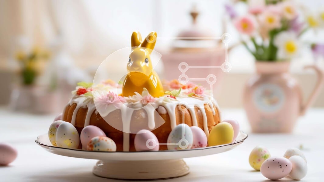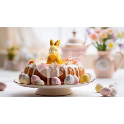 Υπάρχει δυνατότητα προσωποποίησης με δική σας φωτογραφία και προσαρμογής διαστάσεων κατόπιν παραγγελίας. Το συγεκεριμενο Puzzle 10x10 cm – 25 κομμ παρουσιαζει Αυτή η εικόνα παρουσιάζει ένα κέικ λαγουδάκι διακοσμημένο με πασχαλινά αυγά και γλάσο, μαζί με διάφορα άλλα διακοσμητικά αντικείμενα. Ένα ειδώλιο σε σχήμα αυγού κάθεται πάνω από το κέικ, προτείνοντας ένα θέμα για το Πάσχα. Το φόντο διαθέτει