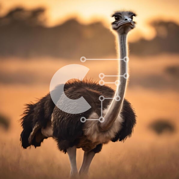 Υπάρχει δυνατότητα προσωποποίησης με δική σας φωτογραφία και προσαρμογής διαστάσεων κατόπιν παραγγελίας. Το συγεκεριμενο puzzle παρουσιαζει Η εικόνα παρουσιάζει μια στρουθοκάμηλο να στέκεται σε ένα χορτάρι το ηλιοβασίλεμα, με το κεφάλι της να γέρνει στο πλάι και τον μακρύ λαιμό της να είναι ορατός. Το πουλί φαίνεται να είναι στραμμένο μακριά από την κάμερα, κάτι που μπορεί να δείχνει ότι είναι περίεργο για κάτι στ