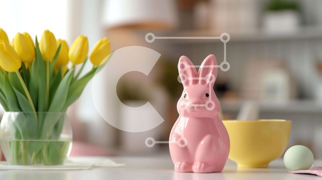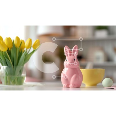 Υπάρχει δυνατότητα προσωποποίησης με δική σας φωτογραφία και προσαρμογής διαστάσεων κατόπιν παραγγελίας. Το συγεκεριμενο Puzzle 10x10 cm – 25 κομμ παρουσιαζει Αυτή η εικόνα παρουσιάζει ένα ειδώλιο ροζ κουνελιού τοποθετημένο σε ένα τραπέζι, που περιβάλλεται από κίτρινες τουλίπες, οι οποίες πιθανότατα αποτελούν μέρος μιας γιορτής του Πάσχα. Ένα φλιτζάνι και ένα βάζο συμπληρώνουν τη σκηνή, υποδηλώνον
