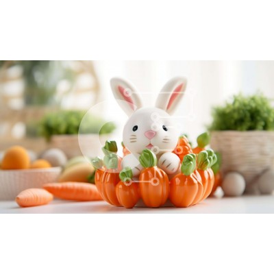 Υπάρχει δυνατότητα προσωποποίησης με δική σας φωτογραφία και προσαρμογής διαστάσεων κατόπιν παραγγελίας. Το συγεκεριμενο Puzzle 10x10 cm – 25 κομμ παρουσιαζει Αυτή η εικόνα αποτυπώνει την ουσία του Πάσχα με ένα αξιολάτρευτο πορτοκαλί κουνελάκι να κάθεται σε ένα καλάθι με καρότα. Η σκηνή στολίζεται με άλλα είδη με θέμα το Πάσχα, όπως φυτά σε γλάστρες και αυγά, συμβάλλοντας στη γιορτινή ατμόσφαιρα.