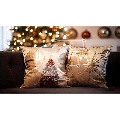 Υπάρχει δυνατότητα προσωποποίησης με δική σας φωτογραφία και προσαρμογής διαστάσεων κατόπιν παραγγελίας. Το συγεκεριμενο Puzzle 10x10 cm – 25 κομμ παρουσιαζει Αυτή η εικόνα παρουσιάζει δύο χριστουγεννιάτικα μαξιλάρια τοποθετημένα σε έναν καναπέ, με ένα όμορφα στολισμένο χριστουγεννιάτικο δέντρο στο φόντο. Το δωμάτιο είναι γεμάτο με εορταστικές διακοσμήσεις, όπως κεριά και στολίδια, δημιουργώντας μ