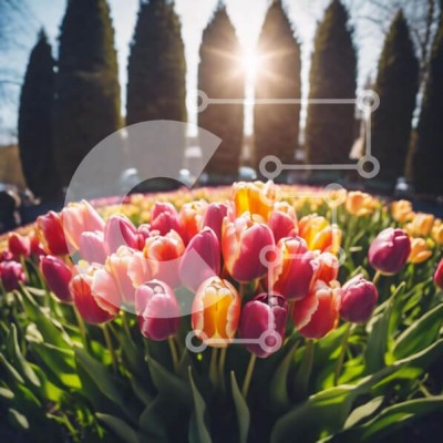 Υπάρχει δυνατότητα προσωποποίησης με δική σας φωτογραφία και προσαρμογής διαστάσεων κατόπιν παραγγελίας. Το συγεκεριμενο puzzle παρουσιαζει Η εικόνα παρουσιάζει ένα χωράφι με πολύχρωμες τουλίπες σε πρώτο πλάνο, με ψηλά δέντρα να το περιβάλλουν. Υπάρχουν πολλά διαφορετικά είδη λουλουδιών που αναπτύσσονται σε αυτό το χωράφι, συμπεριλαμβανομένων των ροζ, κίτρινων και πορτοκαλί ποικιλιών. Ο ήλιος φαίνεται να λάμπει μέ
