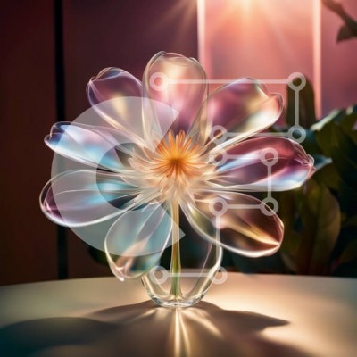 Υπάρχει δυνατότητα προσωποποίησης με δική σας φωτογραφία και προσαρμογής διαστάσεων κατόπιν παραγγελίας. Το συγεκεριμενο puzzle παρουσιαζει Αυτή η εικόνα παρουσιάζει ένα διαφανές γυάλινο βάζο τοποθετημένο σε ένα ξύλινο τραπέζι μπροστά από ένα μεγάλο παράθυρο. Μέσα στο βάζο, υπάρχει ένα μόνο λουλούδι με ροζ και μοβ αποχρώσεις. Το φως του ήλιου φιλτράρει μέσα από το παράθυρο, φωτίζοντας το λουλούδι και δημιουργώντας