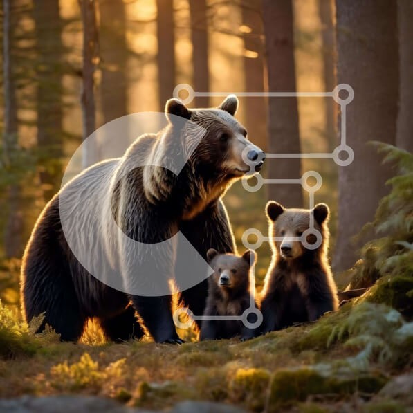 Υπάρχει δυνατότητα προσωποποίησης με δική σας φωτογραφία και προσαρμογής διαστάσεων κατόπιν παραγγελίας. Το συγεκεριμενο puzzle παρουσιαζει Αυτή η εικόνα παρουσιάζει μια μαμά καφέ αρκούδα και τα δύο μικρά της να στέκονται στο δάσος το ηλιοβασίλεμα. Οι αρκούδες αλληλεπιδρούν μεταξύ τους και εξερευνούν το δάσος, που περιβάλλεται από πολλά δέντρα που προσθέτουν στη φυσική ομορφιά της σκηνής. Ένα μοναδικό puzzle που