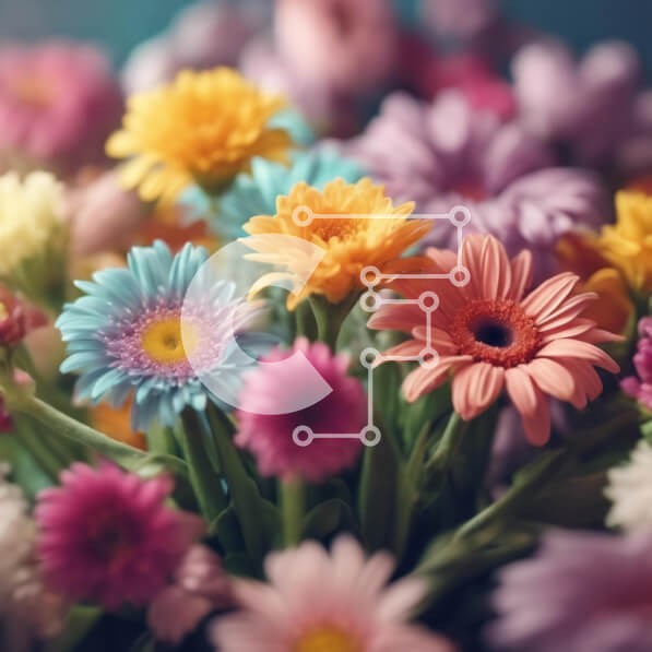 Υπάρχει δυνατότητα προσωποποίησης με δική σας φωτογραφία και προσαρμογής διαστάσεων κατόπιν παραγγελίας. Το συγεκεριμενο puzzle παρουσιαζει Η εικόνα παρουσιάζει ένα μπουκέτο από λουλούδια με έντονα χρώματα, συμπεριλαμβανομένων μαργαρίτες, τριαντάφυλλα και γαρίφαλα. Υπάρχουν πολλά διαφορετικά είδη λουλουδιών στη σύνθεση, τα οποία θα μπορούσαν να χρησιμοποιηθούν για τη δημιουργία βάζας ή κεντρικών κομματιών για ειδι