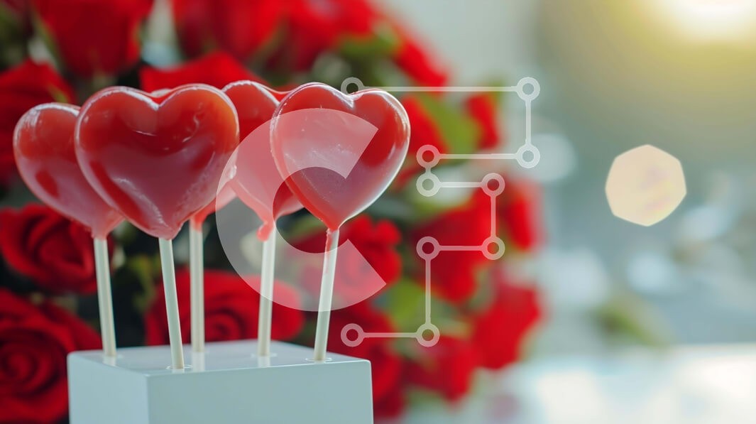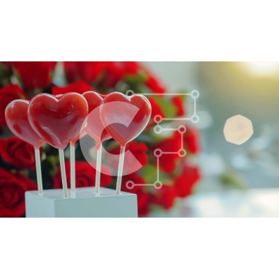 Υπάρχει δυνατότητα προσωποποίησης με δική σας φωτογραφία και προσαρμογής διαστάσεων κατόπιν παραγγελίας. Το συγεκεριμενο Puzzle 10x10 cm – 25 κομμ παρουσιαζει Η εικόνα παρουσιάζει πολλά γλειφιτζούρια σε σχήμα καρδιάς που εμφανίζονται σε μια λευκή βάση, με φόντο ζωηρά κόκκινα τριαντάφυλλα. Επιπρόσθετα, μικρές διακοσμητικές καρδιές τοποθετούνται στα ξυλάκια από φρυγανιές, προσθέτοντας στο εορταστικό