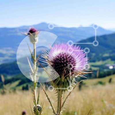 Υπάρχει δυνατότητα προσωποποίησης με δική σας φωτογραφία και προσαρμογής διαστάσεων κατόπιν παραγγελίας. Το συγεκεριμενο puzzle παρουσιαζει Αυτή η εικόνα δείχνει ένα όμορφο μωβ λουλούδι γαϊδουράγκαθου στο πρώτο πλάνο, που ξεχωρίζει σε φόντο μεγαλοπρεπών βουνών και κυματιστών λόφων. Το λουλούδι περιβάλλεται από ψηλά χόρτα, δημιουργώντας ένα γαλήνιο και φυσικό τοπίο. Τα γαϊδουράγκαθα είναι ανθεκτικά φυτά που μπορούν