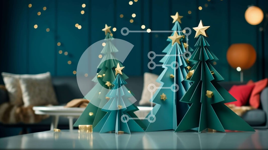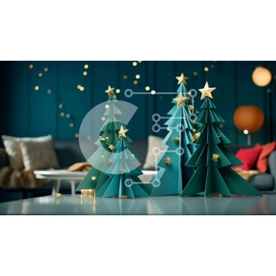 Υπάρχει δυνατότητα προσωποποίησης με δική σας φωτογραφία και προσαρμογής διαστάσεων κατόπιν παραγγελίας. Το συγεκεριμενο Puzzle 10x10 cm – 25 κομμ παρουσιαζει Αυτή η εικόνα παρουσιάζει τρία χάρτινα χριστουγεννιάτικα δέντρα τοποθετημένα σε ένα τραπέζι στο σαλόνι. Τα δέντρα είναι διακοσμημένα με στολίδια και φωτάκια, καθιστώντας τα κατάλληλα τόσο για εσωτερική όσο και για εξωτερική χρήση. Το μπλε χρ