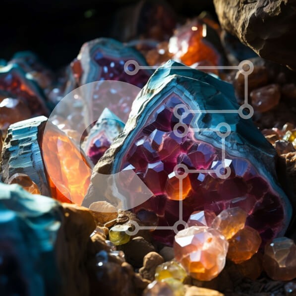 Υπάρχει δυνατότητα προσωποποίησης με δική σας φωτογραφία και προσαρμογής διαστάσεων κατόπιν παραγγελίας. Το συγεκεριμενο puzzle παρουσιαζει Αυτή η εικόνα παρουσιάζει μια ομάδα πολύχρωμων κρυστάλλων σε μια βραχώδη επιφάνεια. Οι κρύσταλλοι αποτελούνται από διαφορετικούς τύπους ορυκτών, όπως κόκκινο, πορτοκαλί, κίτρινο και πράσινο. Διαφέρουν σε σχήματα και μεγέθη, με μερικά μεγαλύτερα και πιο ακανόνιστα σε σχήμα από
