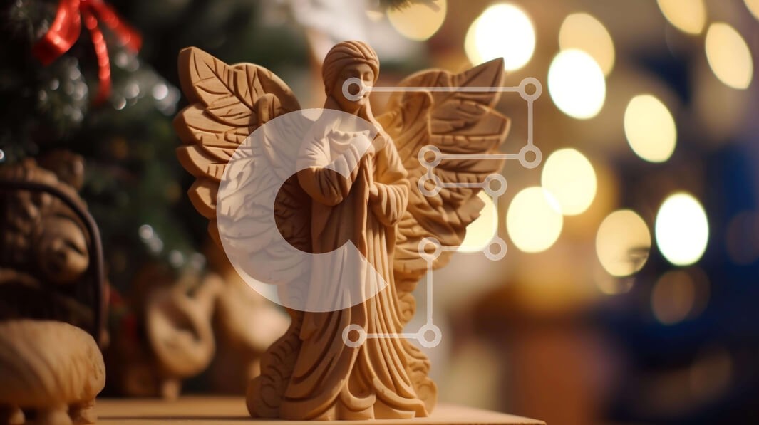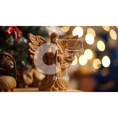 Υπάρχει δυνατότητα προσωποποίησης με δική σας φωτογραφία και προσαρμογής διαστάσεων κατόπιν παραγγελίας. Το συγεκεριμενο Puzzle 10x10 cm – 25 κομμ παρουσιαζει Αυτή η εικόνα παρουσιάζει ένα ξύλινο άγαλμα αγγέλου τοποθετημένο μπροστά από ένα χριστουγεννιάτικο δέντρο. Το άγαλμα περιβάλλεται από μικρά ειδώλια, προσθέτοντας στη συνολική διακοσμητική έκθεση. Το χριστουγεννιάτικο δέντρο είναι στολισμένο