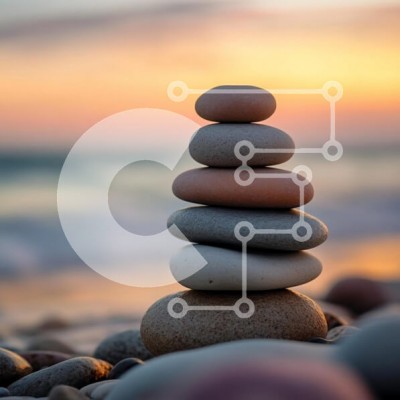Υπάρχει δυνατότητα προσωποποίησης με δική σας φωτογραφία και προσαρμογής διαστάσεων κατόπιν παραγγελίας. Το συγεκεριμενο puzzle παρουσιαζει Η εικόνα δείχνει μια γαλήνια στοίβα από λεία βότσαλα ισορροπημένα κομψά σε μια αμμώδη παραλία, που φωτίζεται από την απαλή λάμψη ενός ηλιοβασιλέματος. Τα βότσαλα ποικίλλουν σε μέγεθος και χρώμα, με απαλές αποχρώσεις του γκρι και μια νότα πορτοκαλί, δημιουργώντας μια αρμονική δ