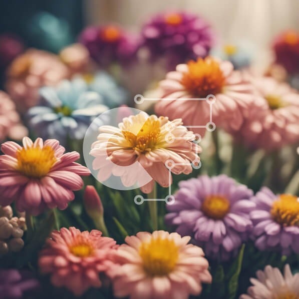 Υπάρχει δυνατότητα προσωποποίησης με δική σας φωτογραφία και προσαρμογής διαστάσεων κατόπιν παραγγελίας. Το συγεκεριμενο puzzle παρουσιαζει Η εικόνα δείχνει ένα όμορφο μπουκέτο από πολύχρωμα λουλούδια σε αποχρώσεις του ροζ, του μωβ, του κίτρινου και του μπλε. Διάφοροι τύποι λουλουδιών, όπως μαργαρίτες, γαρύφαλλα, κρίνοι, ανεμώνες, κοσμήματα και ηλιοτρόπια, είναι τοποθετημένα μαζί για μια εκπληκτική εμφάνιση. Μερικ