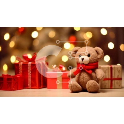 Υπάρχει δυνατότητα προσωποποίησης με δική σας φωτογραφία και προσαρμογής διαστάσεων κατόπιν παραγγελίας. Το συγεκεριμενο Puzzle 10x10 cm – 25 κομμ παρουσιαζει Αυτή η εικόνα παρουσιάζει ένα καφέ αρκουδάκι να κάθεται μπροστά από πολλά κουτιά δώρων, τα οποία είναι διακοσμημένα με κόκκινα και πράσινα φώτα. Τα δώρα μπορεί να είναι δώρα για κάποιον ιδιαίτερο ή απλά διακοσμητικά για την περίοδο των γιορτ
