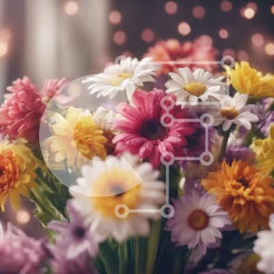 Υπάρχει δυνατότητα προσωποποίησης με δική σας φωτογραφία και προσαρμογής διαστάσεων κατόπιν παραγγελίας. Το συγεκεριμενο puzzle παρουσιαζει Η εικόνα παρουσιάζει ένα μπουκέτο από πολύχρωμα λουλούδια, που περιλαμβάνουν μαργαρίτες, τριαντάφυλλα και γαρίφαλα, τοποθετημένα μπροστά από ένα κομψά φωτισμένο φόντο. Η σύνθεση αναδεικνύει τη φρεσκάδα και τη ζωντάνια των λουλουδιών, με μερικά να εμφανίζονται πιο λαμπερά από ά