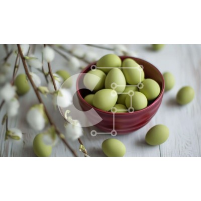 Υπάρχει δυνατότητα προσωποποίησης με δική σας φωτογραφία και προσαρμογής διαστάσεων κατόπιν παραγγελίας. Το συγεκεριμενο Puzzle 10x10 cm – 25 κομμ παρουσιαζει Αυτή η εικόνα δείχνει ένα κόκκινο μπολ γεμάτο με πράσινα πασχαλινά αυγά, συνοδευόμενο από λευκά λουλούδια και κλαδιά. Η σύνθεση είναι ιδανική για πασχαλινές διακοσμήσεις ή γιορτές, δημιουργώντας μια γιορτινή και χαρούμενη ατμόσφαιρα. Ένα μο