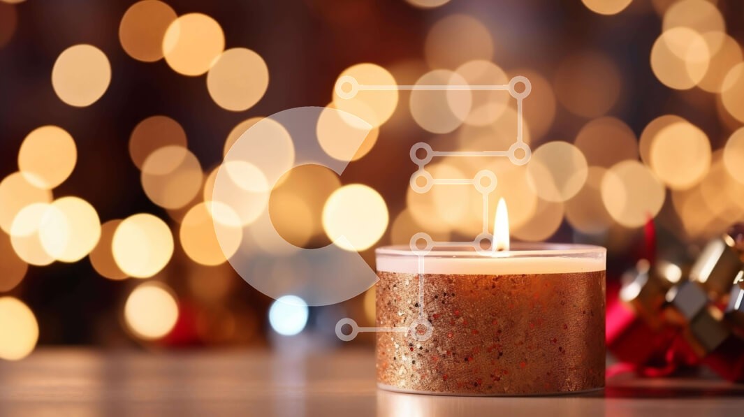 Υπάρχει δυνατότητα προσωποποίησης με δική σας φωτογραφία και προσαρμογής διαστάσεων κατόπιν παραγγελίας. Το συγεκεριμενο Puzzle 10x10 cm – 25 κομμ παρουσιαζει Αυτή η εικόνα δείχνει ένα αναμμένο κερί τοποθετημένο δίπλα σε γιορτινά διακοσμητικά, συμπεριλαμβανομένων καμπάνων και στολιδιών. Η ζεστή λάμψη του κεριού προσθέτει μια ζεστή και εορταστική ατμόσφαιρα στη σκηνή. Το δωμάτιο φωτίζεται από πολλά