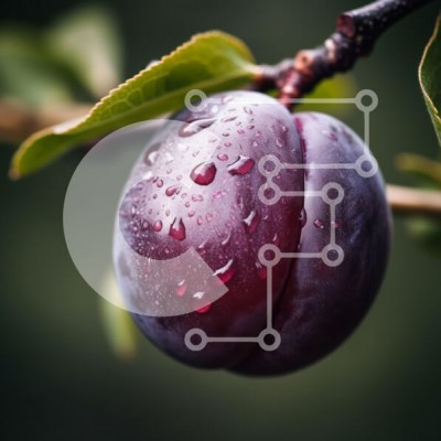 Υπάρχει δυνατότητα προσωποποίησης με δική σας φωτογραφία και προσαρμογής διαστάσεων κατόπιν παραγγελίας. Το συγεκεριμενο puzzle παρουσιαζει Μια κινηματογράφηση σε πρώτο πλάνο ενός ώριμου, αστραφτερού δαμάσκηνου καλυμμένου με σταγονίδια νερού. Το δαμάσκηνο είναι μωβ με νότες κόκκινου και κρέμεται από ένα κλαδί με πράσινα φύλλα, σε ένα θολό πράσινο φόντο. Οι σταγόνες νερού του δίνουν μια φρέσκια και ελκυστική εμφάνι