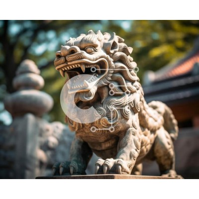 Υπάρχει δυνατότητα προσωποποίησης με δική σας φωτογραφία και προσαρμογής διαστάσεων κατόπιν παραγγελίας. Το συγεκεριμενο puzzle παρουσιαζει Αυτή η εικόνα παρουσιάζει ένα μεγάλο, πέτρινο άγαλμα λιονταριού τοποθετημένο πάνω από μερικές πέτρες. Είναι πιθανόν μέρος ενός εξωτερικού χώρου και μπορεί να έχει τοποθετηθεί για διακοσμητικούς σκοπούς. Το άγαλμα βρίσκεται συχνά σε κήπους ή πάρκα με θέμα την Ασία για να προσελ