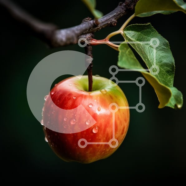 Υπάρχει δυνατότητα προσωποποίησης με δική σας φωτογραφία και προσαρμογής διαστάσεων κατόπιν παραγγελίας. Το συγεκεριμενο puzzle παρουσιαζει Αυτή η εικόνα παρουσιάζει ένα φρέσκο, κόκκινο μήλο που κρέμεται από ένα κλαδί, στολισμένο με σταγόνες νερού, υποδηλώνοντας πρόσφατη βροχή ή πρωινή δροσιά. Το μήλο έχει μια ζωηρή χρωματική κλίση από πράσινο έως κόκκινο, που δείχνει την ωριμότητά του. Γύρω από το μήλο υπάρχουν π
