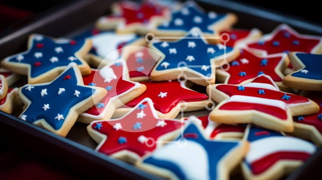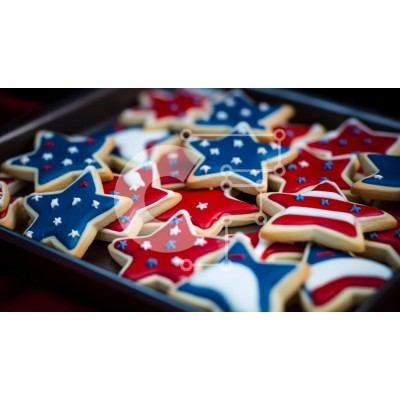 Υπάρχει δυνατότητα προσωποποίησης με δική σας φωτογραφία και προσαρμογής διαστάσεων κατόπιν παραγγελίας. Το συγεκεριμενο Puzzle 10x10 cm – 25 κομμ παρουσιαζει Η εικόνα δείχνει έναν δίσκο με μπισκότα στολισμένο με κόκκινα, λευκά και μπλε αστέρια, ιδανικό για μια γιορτή της Ημέρας της Ανεξαρτησίας. Διάφορα πατριωτικά σχέδια όπως αστέρια και σημαίες είναι ορατά στα μπισκότα. Ένα μοναδικό Puzzle 10x1