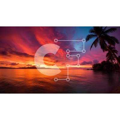 Υπάρχει δυνατότητα προσωποποίησης με δική σας φωτογραφία και προσαρμογής διαστάσεων κατόπιν παραγγελίας. Το συγεκεριμενο puzzle παρουσιαζει Η εικόνα δείχνει ένα ζωντανό ηλιοβασίλεμα πάνω από τον ωκεανό, με καταπράσινους φοίνικες στο προσκήνιο. Γύρω από τη σκηνή είναι το αστραφτερό νερό, υπονοώντας την πιθανότητα αυτή η τοποθεσία να βρίσκεται σε ένα νησί ή σε μια τροπική περιοχή. Το τοπίο μπορεί να περιλαμβάνει πολ