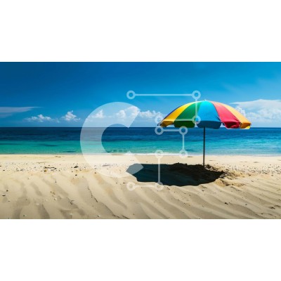 Υπάρχει δυνατότητα προσωποποίησης με δική σας φωτογραφία και προσαρμογής διαστάσεων κατόπιν παραγγελίας. Το συγεκεριμενο puzzle παρουσιαζει Η εικόνα παρουσιάζει μια πολύχρωμη ομπρέλα που κάθεται στην άμμο δίπλα στον ωκεανό. Είναι πιθανό η ομπρέλα να τοποθετήθηκε στην παραλία ειδικά για να κάθονται κάτω από αυτήν και να απολαμβάνουν τον ήλιο. Υπάρχουν επίσης αρκετοί μικροί βράχοι διάσπαρτοι στην περιοχή, που μπορεί