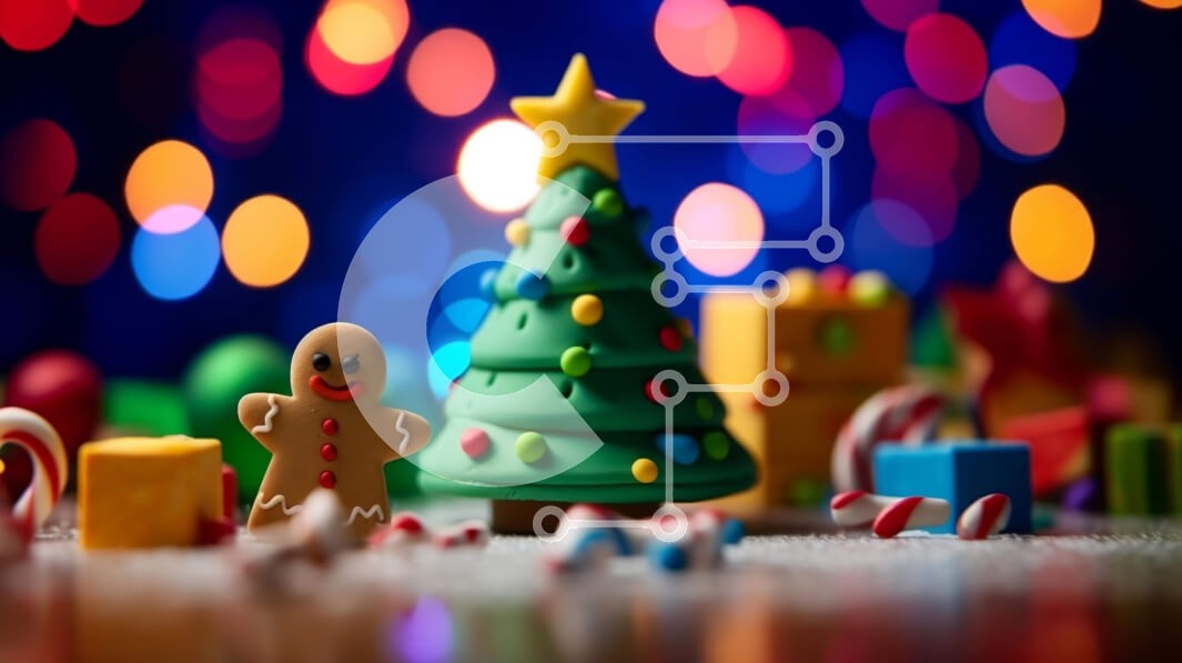 Υπάρχει δυνατότητα προσωποποίησης με δική σας φωτογραφία και προσαρμογής διαστάσεων κατόπιν παραγγελίας. Το συγεκεριμενο Puzzle 10x10 cm – 25 κομμ παρουσιαζει Αυτή η εικόνα παρουσιάζει μια συλλογή από διακοσμητικά με θέμα τις γιορτές, συμπεριλαμβανομένου ενός χριστουγεννιάτικου δέντρου με παιχνίδι, μελόψωμο, ζαχαροκάλαμου και άλλων εορταστικών ειδών. Η σκηνή φωτίζεται, δημιουργώντας μια ζεστή και