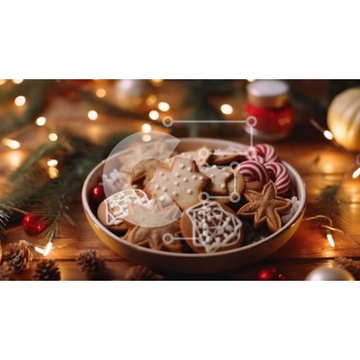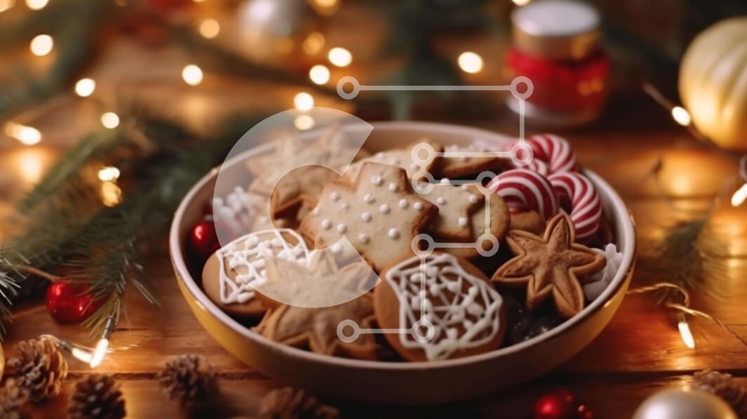 Υπάρχει δυνατότητα προσωποποίησης με δική σας φωτογραφία και προσαρμογής διαστάσεων κατόπιν παραγγελίας. Το συγεκεριμενο Puzzle 10x10 cm – 25 κομμ παρουσιαζει Αυτή η εικόνα παρουσιάζει ένα μπολ με χριστουγεννιάτικα μπισκότα διακοσμημένα με μελόψωμο, ταράνδους και στολίδια χριστουγεννιάτικων δέντρων. Τα μπισκότα τοποθετούνται μπροστά από ένα κομψά διακοσμημένο ξύλινο τραπέζι, δημιουργώντας μια γιορ