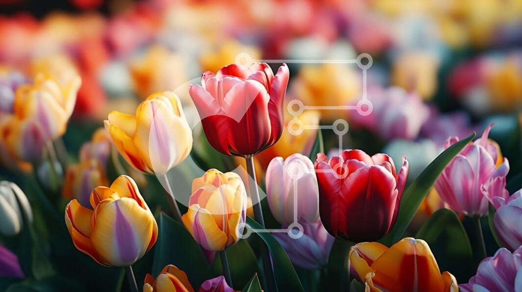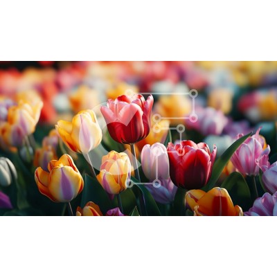 Υπάρχει δυνατότητα προσωποποίησης με δική σας φωτογραφία και προσαρμογής διαστάσεων κατόπιν παραγγελίας. Το συγεκεριμενο puzzle παρουσιαζει Αυτή η εικόνα δείχνει ένα χωράφι με πολύχρωμες τουλίπες σε πλήρη άνθιση. Οι τουλίπες είναι ένα μείγμα κόκκινου, πορτοκαλί, κίτρινου και ροζ, με τα πέταλά τους ανοιχτά και να ταλαντεύονται στο αεράκι. Είναι διατεταγμένα σε ένα φαινομενικά τυχαίο μοτίβο, δημιουργώντας μια όμορφη