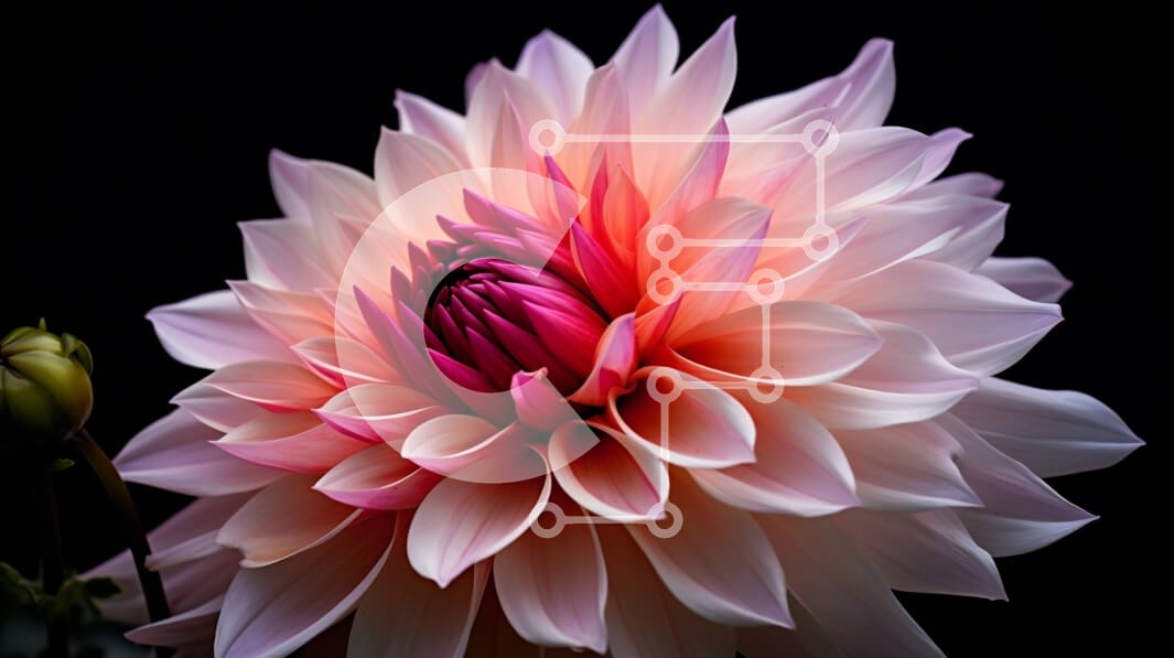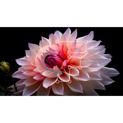 Υπάρχει δυνατότητα προσωποποίησης με δική σας φωτογραφία και προσαρμογής διαστάσεων κατόπιν παραγγελίας. Το συγεκεριμενο puzzle παρουσιαζει Αυτή η εικόνα παρουσιάζει ένα εντυπωσιακό ροζ και λευκό λουλούδι ντάλιας σε πλήρη άνθιση. Το λουλούδι τοποθετείται στο κέντρο ενός άδειου μαύρου φόντου, επιτρέποντας στα ζωηρά χρώματά του να ξεχωρίζουν. Γύρω από το κέντρο του λουλουδιού υπάρχουν πολλά φύλλα, που προσθέτουν στη