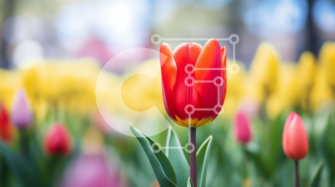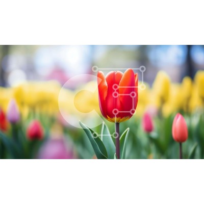 Υπάρχει δυνατότητα προσωποποίησης με δική σας φωτογραφία και προσαρμογής διαστάσεων κατόπιν παραγγελίας. Το συγεκεριμενο puzzle παρουσιαζει Αυτή η εικόνα δείχνει ένα όμορφο χωράφι με λουλούδια με μια προεξέχουσα κόκκινη τουλίπα στο κέντρο. Το χωράφι είναι γεμάτο με μια ποικιλία από κίτρινα, ροζ και πορτοκαλί λουλούδια, όπως μαργαρίτες, νάρκισσους και τριαντάφυλλα, μαζί με χόρτα και αγριολούλουδα, δημιουργώντας μια