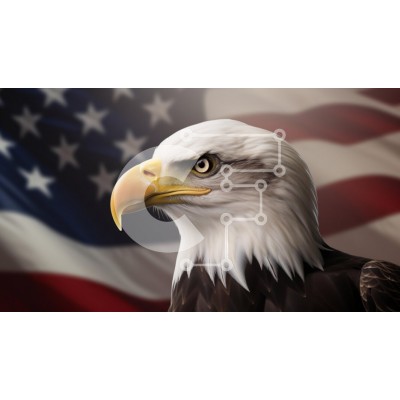 Υπάρχει δυνατότητα προσωποποίησης με δική σας φωτογραφία και προσαρμογής διαστάσεων κατόπιν παραγγελίας. Το συγεκεριμενο puzzle παρουσιαζει Η εικόνα απεικονίζει έναν μεγαλοπρεπή φαλακρό αετό με εντυπωσιακές λεπτομέρειες του προσώπου και ένα έντονο βλέμμα, με φόντο την αμερικανική σημαία. Τα φτερά του αετού είναι κυρίως καφέ και λευκά, με έντονο κίτρινο ράμφος που προσθέτει στην άγρια εμφάνισή του. Η σημαία ξεδιπ