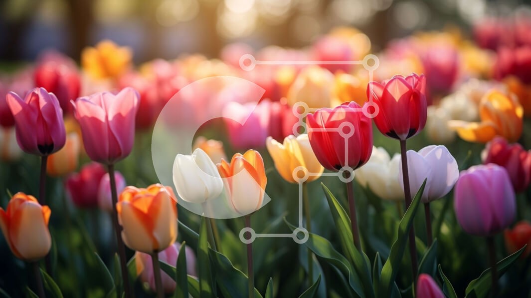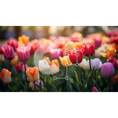 Υπάρχει δυνατότητα προσωποποίησης με δική σας φωτογραφία και προσαρμογής διαστάσεων κατόπιν παραγγελίας. Το συγεκεριμενο puzzle παρουσιαζει Αυτή η εικόνα δείχνει ένα χωράφι με πολύχρωμες τουλίπες σε πλήρη άνθιση. Τα ζωηρά λουλούδια φαίνονται σε διάφορες αποχρώσεις του ροζ, κίτρινου, πορτοκαλί και κόκκινου, με ανοιχτά πέταλα που ταλαντεύονται με χάρη στο αεράκι. Ο ήλιος λάμπει έντονα, ρίχνοντας ένα ζεστό και χρυσαφ
