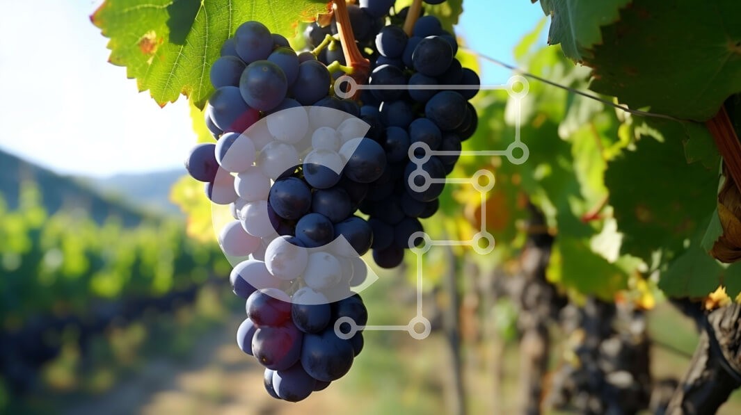 Υπάρχει δυνατότητα προσωποποίησης με δική σας φωτογραφία και προσαρμογής διαστάσεων κατόπιν παραγγελίας. Το συγεκεριμενο puzzle παρουσιαζει Αυτή η εικόνα παρουσιάζει ένα τσαμπί σκούρα μοβ, ώριμα σταφύλια που κρέμονται από ένα αμπέλι σε έναν αμπελώνα. Το αμπέλι καλύπτεται από φύλλα, δημιουργώντας μια πλούσια και ζωντανή σκηνή. Ο καταγάλανος ουρανός στο φόντο προσθέτει στη συνολική ομορφιά της εικόνας. Ένα μοναδικό