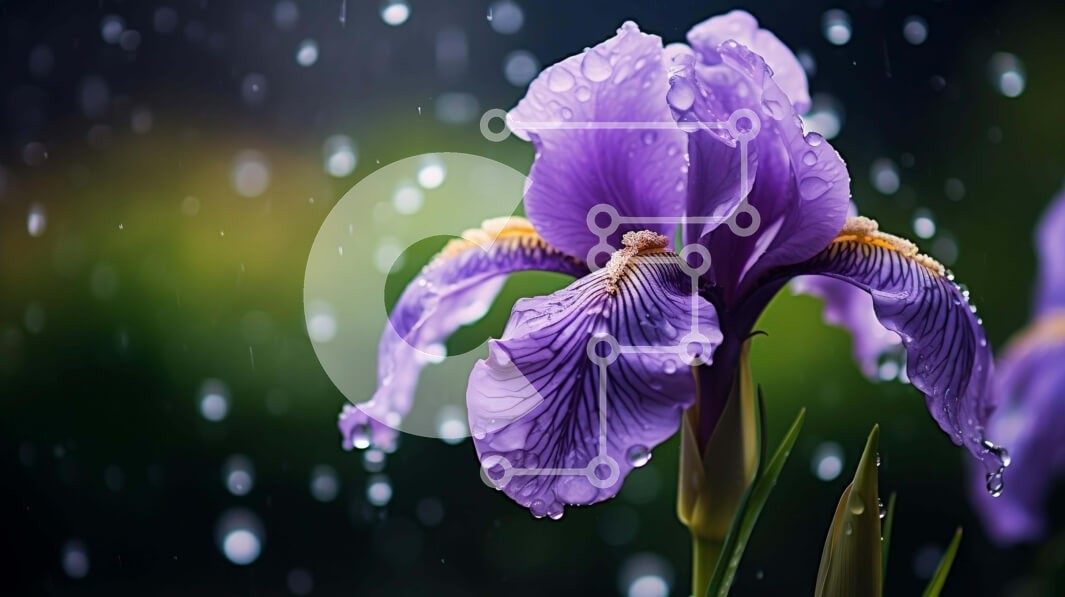 Υπάρχει δυνατότητα προσωποποίησης με δική σας φωτογραφία και προσαρμογής διαστάσεων κατόπιν παραγγελίας. Το συγεκεριμενο puzzle παρουσιαζει Αυτή η εικόνα δείχνει ένα μωβ λουλούδι ίριδας στη βροχή, με σταγόνες νερού να πέφτουν από τον ουρανό. Το λουλούδι φαίνεται ζωντανό και υγιές, παρά τις έντονες βροχοπτώσεις που έχει υπομείνει, επιδεικνύοντας την ανθεκτικότητα και την ομορφιά του. Ένα μοναδικό puzzle που συνδυά