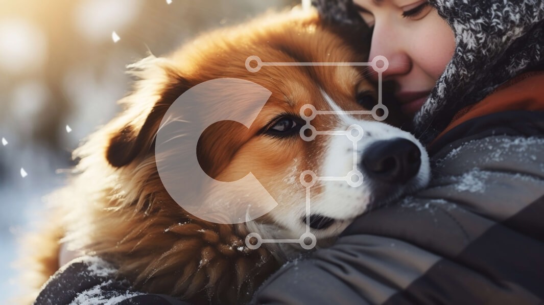 Υπάρχει δυνατότητα προσωποποίησης με δική σας φωτογραφία και προσαρμογής διαστάσεων κατόπιν παραγγελίας. Το συγεκεριμενο puzzle παρουσιαζει Αυτή η εικόνα απεικονίζει μια γυναίκα που φορά μαύρο σακάκι και κασκόλ, αγκαλιάζοντας έναν καφέ και λευκό σκύλο σε ένα χιονισμένο τοπίο. Ο ήλιος λάμπει στο βάθος, φωτίζοντας τη σκηνή, ενώ δέντρα και βουνά φαίνονται στο βάθος. Ένα μοναδικό puzzle που συνδυάζει ποιότητα, αισθητ