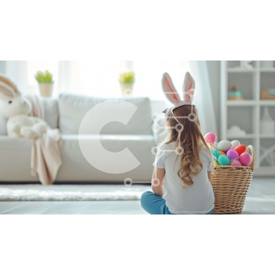 Υπάρχει δυνατότητα προσωποποίησης με δική σας φωτογραφία και προσαρμογής διαστάσεων κατόπιν παραγγελίας. Το συγεκεριμενο Puzzle 10x10 cm – 25 κομμ παρουσιαζει Αυτή η εικόνα παρουσιάζει ένα νεαρό κορίτσι που φοράει αυτιά λαγουδάκι και κάθεται μπροστά σε ένα πασχαλινό καλάθι γεμάτο με πολύχρωμα αυγά. Το δωμάτιο μπορεί επίσης να περιέχει άλλα αντικείμενα που σχετίζονται με το θέμα του Πάσχα, όπως λού