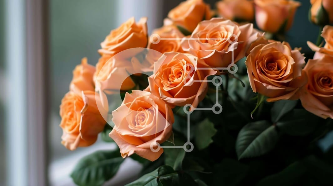 Υπάρχει δυνατότητα προσωποποίησης με δική σας φωτογραφία και προσαρμογής διαστάσεων κατόπιν παραγγελίας. Το συγεκεριμενο puzzle παρουσιαζει Η εικόνα δείχνει ένα μπουκέτο με πορτοκαλί τριαντάφυλλα μπροστά από ένα ανοιχτό παράθυρο. Τα τριαντάφυλλα έρχονται σε διάφορα μεγέθη και χρώματα, όπως κόκκινο, πορτοκαλί, κίτρινο και λευκό. Πράσινα φύλλα περιβάλλουν τα λουλούδια, υπονοώντας την πρόσφατη φροντίδα. Ένα μοναδικό