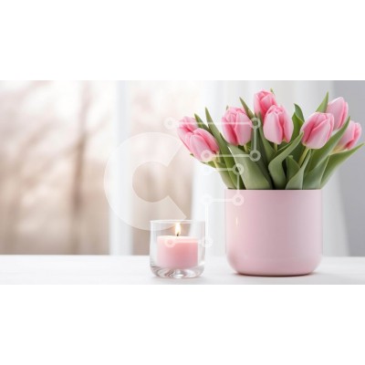 Υπάρχει δυνατότητα προσωποποίησης με δική σας φωτογραφία και προσαρμογής διαστάσεων κατόπιν παραγγελίας. Το συγεκεριμενο puzzle παρουσιαζει Αυτή η εικόνα παρουσιάζει ένα ροζ βάζο με ζωηρές ροζ τουλίπες και δύο κηροπήγια τοποθετημένα στην κορυφή. Ένα ανοιχτό παράθυρο στο φόντο προσθέτει στη συνολική αισθητική έλξη της σκηνής, με πράσινα φύλλα που περιβάλλουν το βάζο, υποδηλώνοντας τη φρεσκάδα των λουλουδιών. Ένα μ