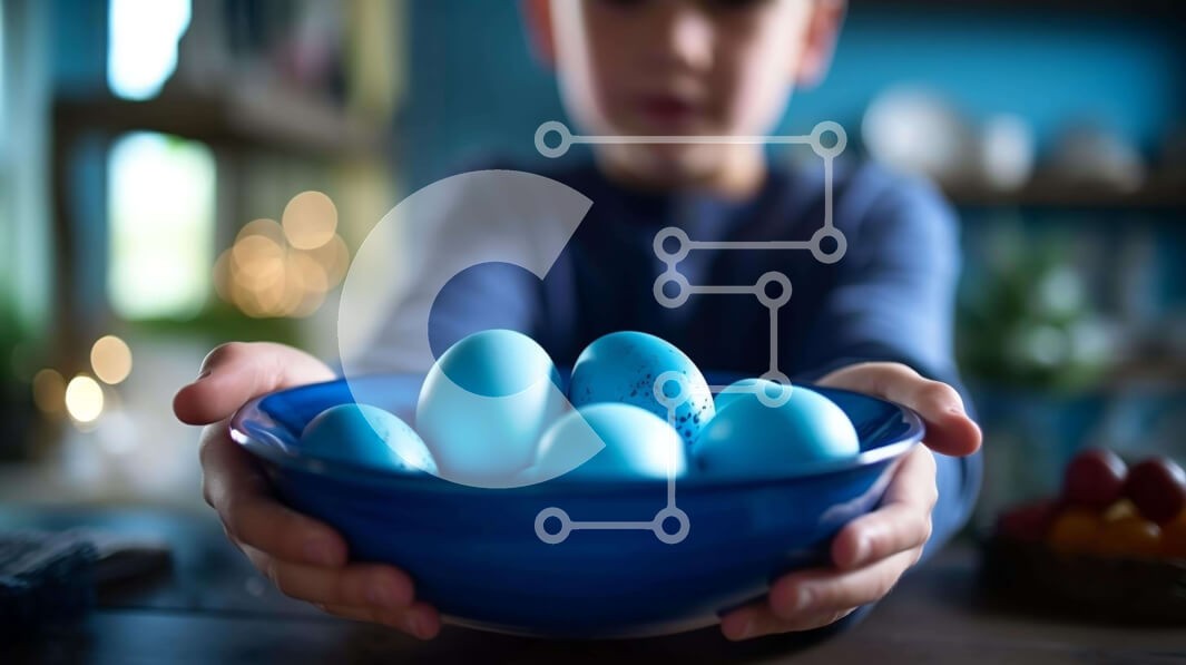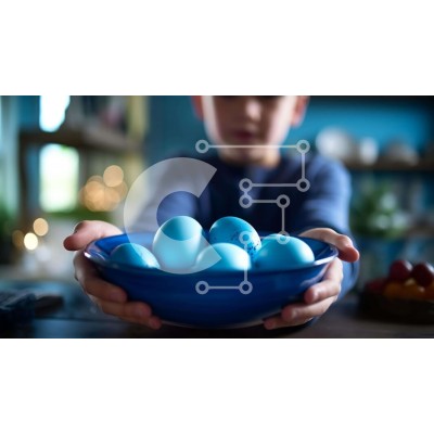 Υπάρχει δυνατότητα προσωποποίησης με δική σας φωτογραφία και προσαρμογής διαστάσεων κατόπιν παραγγελίας. Το συγεκεριμενο Puzzle 10x10 cm – 25 κομμ παρουσιαζει Αυτή η εικόνα παρουσιάζει ένα νεαρό αγόρι που κρατά ένα άδειο μπλε μπολ με πολλά μπλε αυγά. Τα αυγά είναι πιθανώς πασχαλινά αυγά που χρησιμοποιούνται παραδοσιακά για τους εορτασμούς του Πάσχα. Άλλα αντικείμενα στο τραπέζι, όπως φρούτα ή λαχα