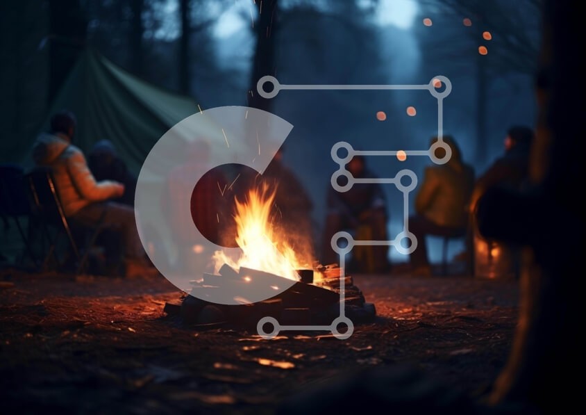 Υπάρχει δυνατότητα προσωποποίησης με δική σας φωτογραφία και προσαρμογής διαστάσεων κατόπιν παραγγελίας. Το συγεκεριμενο puzzle παρουσιαζει Η εικόνα παρουσιάζει μια σκηνή νυχτερινής κατασκήνωσης στο δάσος με αρκετούς ανθρώπους να κάθονται γύρω από μια φωτιά ανάμεσα σε γύρω σκηνές. Η ατμόσφαιρα προτείνει υπαίθριο κάμπινγκ ή ελεύθερο χρόνο με φίλους. Σε κοντινή απόσταση μπορείτε να δείτε εξοπλισμό όπως φανάρια ή πυρ
