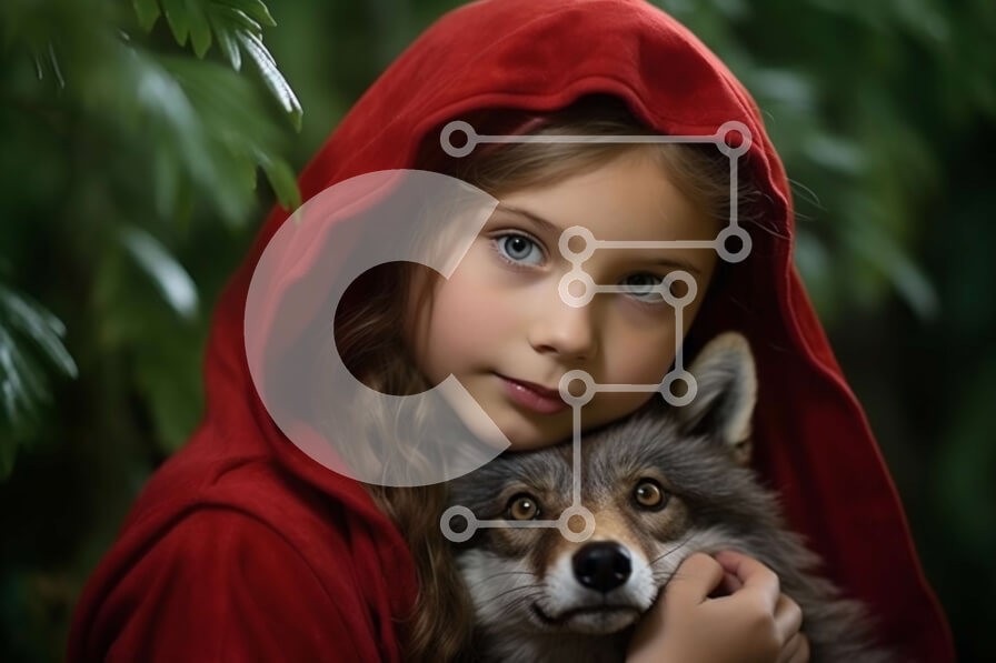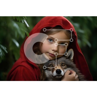 Υπάρχει δυνατότητα προσωποποίησης με δική σας φωτογραφία και προσαρμογής διαστάσεων κατόπιν παραγγελίας. Το συγεκεριμενο puzzle παρουσιαζει Αυτή η εικόνα απεικονίζει ένα νεαρό κορίτσι που κρατά έναν μικρό λύκο στην αγκαλιά της. Το κορίτσι φορά έναν κόκκινο μανδύα με κουκούλα και έχει μακριά, καστανά σγουρά μαλλιά. Και το κορίτσι και ο λύκος χαμογελούν, και ο λύκος έχει ένα χνουδωτό γκρι και λευκό παλτό. Το φόντο δ