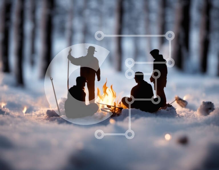 Υπάρχει δυνατότητα προσωποποίησης με δική σας φωτογραφία και προσαρμογής διαστάσεων κατόπιν παραγγελίας. Το συγεκεριμενο puzzle παρουσιαζει Αυτή η εικόνα δείχνει μια ομάδα ανθρώπων με σιλουέτα που κάθονται γύρω από μια φωτιά σε ένα χιονισμένο δάσος. Φαίνεται να ασχολούνται με υπαίθριες δραστηριότητες, πιθανώς πεζοπορία ή κάμπινγκ. Κεριά τοποθετούνται γύρω από τη φωτιά, προσθέτοντας στη ζεστή και ζεστή ατμόσφαιρα.