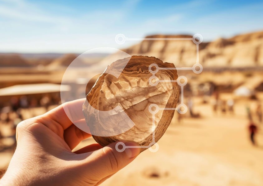 Υπάρχει δυνατότητα προσωποποίησης με δική σας φωτογραφία και προσαρμογής διαστάσεων κατόπιν παραγγελίας. Το συγεκεριμενο puzzle παρουσιαζει Η εικόνα απεικονίζει ένα άτομο που κρατά ένα αντικείμενο στο χέρι του. Το αντικείμενο φαίνεται να είναι κατασκευασμένο από ψαμμίτη, κάτι που μπορεί να υποδηλώνει ότι βρέθηκε στην έρημο. Μπορείτε να δείτε ανθρώπους να περπατούν στην περιοχή, υποδηλώνοντας ότι απολαμβάνουν το το
