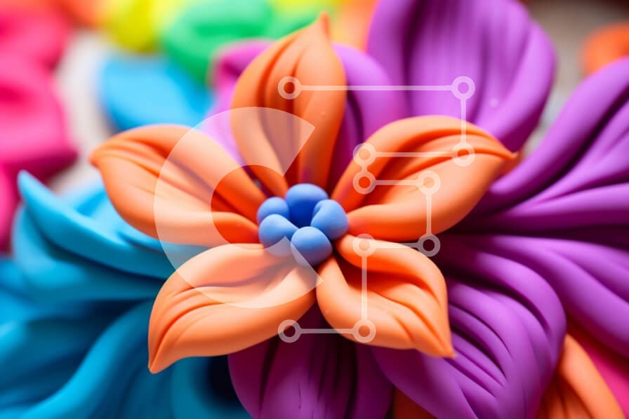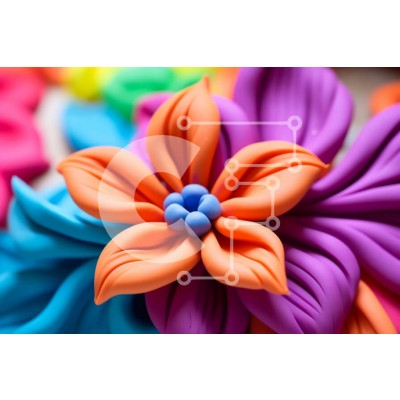 Υπάρχει δυνατότητα προσωποποίησης με δική σας φωτογραφία και προσαρμογής διαστάσεων κατόπιν παραγγελίας. Το συγεκεριμενο puzzle παρουσιαζει Αυτή η εικόνα δείχνει μια κοντινή άποψη ενός πολύχρωμου λουλουδιού από πολυμερή πηλό. Το λουλούδι έχει ένα φωτεινό μπλε κέντρο με πορτοκαλί και κίτρινα πέταλα. Τα πέταλα είναι σχολαστικά σμιλεμένα και φαίνεται να βρίσκονται στη διαδικασία ανοίγματος. Το λουλούδι τοποθετείται σ
